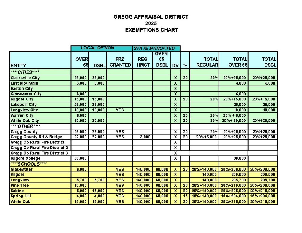 Article VIII, Sec. 1(j) of the Texas Constitution provides that goods, wares, ores, merchandise as well as personal property used in the repair of air carrier equipment, can qualify for a property tax exemption, if they meet certain criteria. Oil, natural gas, and petroleum products, however, will not qualify. In order to qualify, items must be detained in Texas for assembling, storing, manufacturing, fabricating, or processing purposes. More importantly, the items must leave the state within 175 days or less after the date they were acquired or brought into Texas. The Texas Constitution authorizes counties, cities, or towns, school districts, and junior college districts to opt to continue taxing the property. In Gregg County, several of the taxing units do not offer the Freeport Exemption. Qualified property within granting jurisdictions will be eligible.